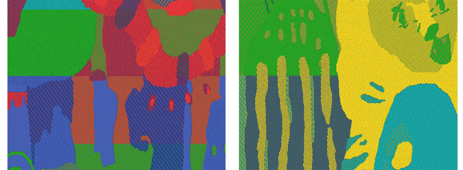 Recent artwork experimenting with various material, color, and size in weft sequencing